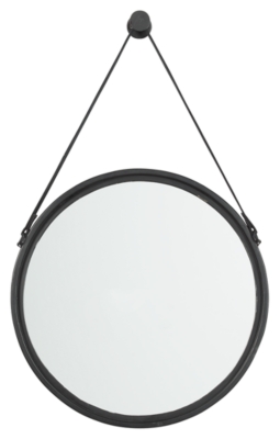 The Dusan accent mirror comes with a leather strap and a metal hanging post that give character to any space.