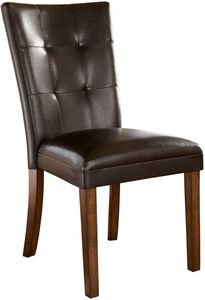 The Lacey upholstered, dining side chair features a cushioned faux-leather upholstery on its wooden seat and legs, providing unending comfort and class, course after course.