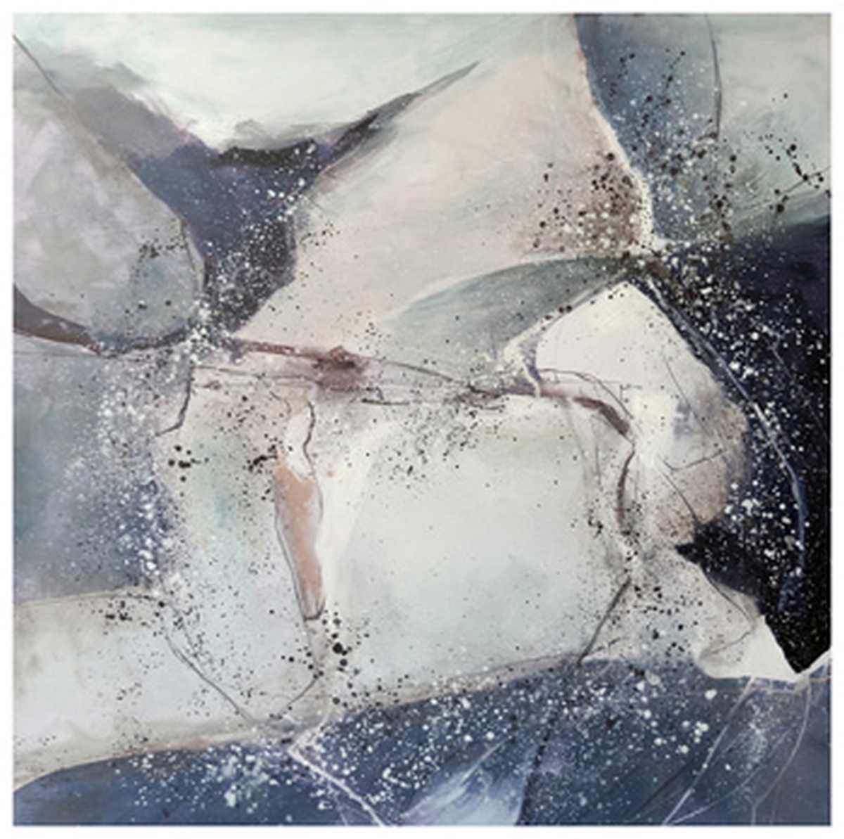 Abstract design in shades of blue, gray, white and taupe